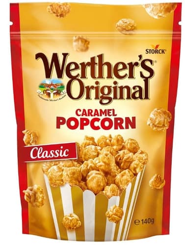 Knuspriges Popcorn umhüllt von echtem Werther’s Original Karamell mit Brezeln