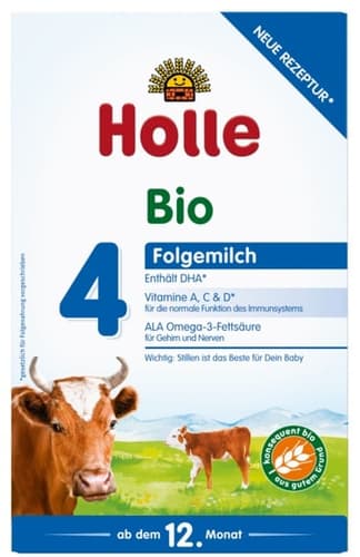 High-quality EU organic milk is used for organic follow-on milk 4. The EU organic logo guarantees compliance with the legal requirements for organic cultivation and the careful processing of the raw materials used. This is monitored by the relevant organic inspection body. Vitamins and minerals are added according to the legal requirements.