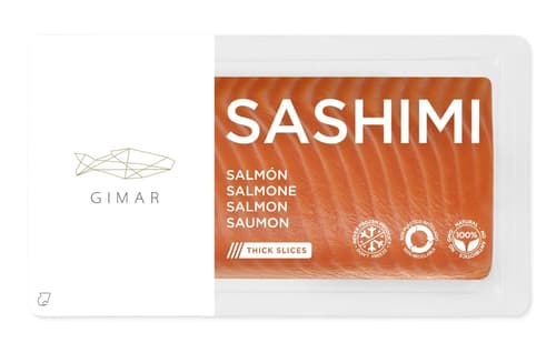 The salmon sashimi is sliced and allows the consumer to immerse themselves in an exquisite experience. Each slice reflects Gimar's mastery, offering unparalleled quality with every bite. Their innovative, careful and precise cutting technique guarantees optimum preservation of the salmon's texture and flavour.