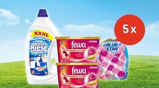 5 Gewinnpakete im Wert von je 100€ mit Wasch- und Reinigungsprodukten von den Marken Weißer Riese, Fewa, Silan, Blue Star und Somat. (Symbolbild)