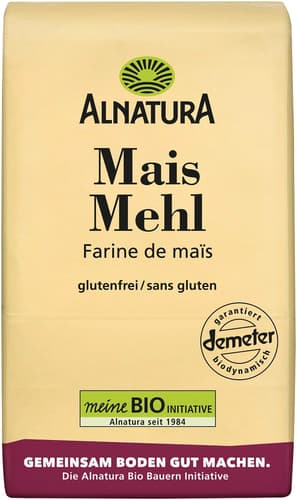 Ein garantiert glutenfreies Bio-Maismehl – perfekt für Backwaren, Tortillas und die kreative Küche sowie zum Binden von Suppen und Saucen. Pikantes oder süßes Gebäck aus Weizen- oder Dinkelmehl wird durch die Zugabe von Alnatura Maismehl luftiger. Der Mais stammt aus biodynamischem Landbau (Demeter).