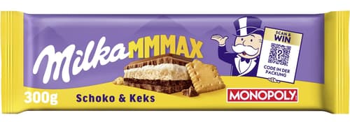 Milka Mmmax Schoko & Keks ist der zartschmelzende Schokoladengenuss aus Alpenmilch Schokolade aus 100% Alpenmilch mit knusprigem Keks.