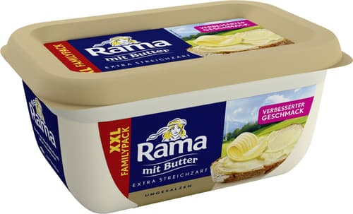 Zutaten: Pflanzliche Öle und Fette (Raps, Kokos, Sonnenblumen), Trinkwasser, BUTTER 9%, Emulgator (Lecithin), natürliches Aroma, Farbstoff (Carotin).