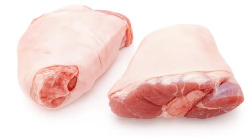 2 Stück vordere Stelze vom Schwein (Knierling), in milder Lake gepökelt (gesurt). Richtig gebraten erhält man eine knusprige Schwarte mit butterzartem Fleisch. Eine Stelze eignet sich perfekt für eine Person.