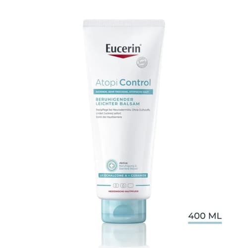 Eucerin AtopiControl Beruhigender Balsam für die tägliche Anwendung wurde speziell entwickelt , um gereizte und juckende Haut zu beruhigen und intensiv mit Feuchtigkeit zu versorgen. Der leichte, aber pflegende Öl-in-Wasser-Balsam ist mit beruhigendem Licochalcone A, Ceramiden und Sheabutter angereichert, um die Hautbarriere zu stärken und Trockenheit und Juckreiz zu lindern. Er sollte auch während eines Schubs zusammen mit Eucerin AtopiControl Akut Pflegecreme, Eucerin Anti-Juckreiz-Spray und Ihren üblichen Medikamenten verwendet werden. Der Neurodermitis-Balsam spendet sofort Feuchtigkeit und macht die Haut weich und geschmeidig. Bei regelmäßiger Anwendung verbessert sich der Hautzustand spürbar.