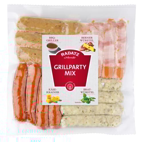Radatz Grillpartymix - Mini Käsegriller, Mini Käsekrainer, Mini Bratwürstel, Mini Berner Würstel. Vier verschiedene Mini-Würsteln mache Lust aufs Grille und Feiern. Für große und kleine Würstelliebhaber.