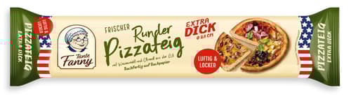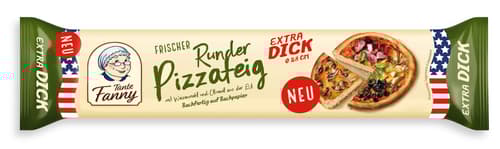.Crispy & airy high at the same time! The round Tante Fanny Fresh Pizza Dough Extra Thick is ideal for lovers of thick pizza bases. Simply top with your favourite ingredients and bake. Guaranteed to bring your own individual "American Style" pizza enjoyment to your home. pizza enjoyment at home. Aunt Fanny - Fannytastically simple!