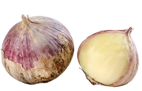 Der Knollenknoblauch, wie der Chinesische Knoblauch auch genannt wird, sieht letztlich eher aus wie eine kleine Zwiebel, denn statt den vielen Knoblauchzehen besteht er nur aus einer Zehe, die sozusagen durchgängig und rund ist.