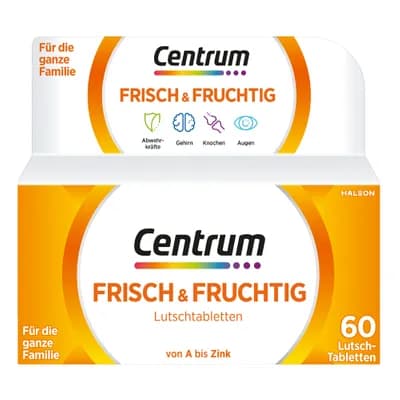Der menschliche Körper ist ein biologisches Meisterwerk in dem hochkomplexe Prozesse ablaufen für die Mikronährstoffe in ausreichender Menge benötigt werden. Die Centrum Nährstoff-Formel Frisch ; Fruchtig enthält alle lebensnotwendigen Vitamine sowie wichtige Mineralstoffe und Spurenelemente. Die Formulierung ist ein Allrounder zur optimalen Aufwertung der Ernährung der ganzen Familie. Mit ein bis zwei Lutschtabletten pro Tag decken Sie den Tagesbedarf vieler Vitamine, Mineralstoffe ; Spurenelemente. Das Ergebnis: Der Körper wird durch die mit Sorgfalt zusammengestellte Nährstoffformel ganzheitlich unterstützt.