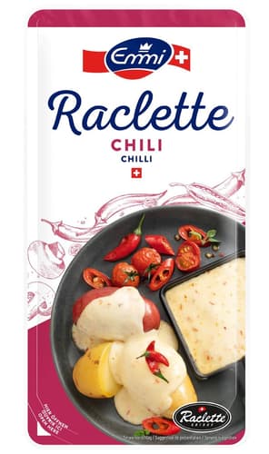 Raclette ist neben Fondue ein traditionelles Schweizer Nationalgericht. Und wer könnte dies besser herstellen, als die Schweizer selbst. Der Emmi Raclette Classic zeichnet sich besonders durch den harmonisch aromatischen Geschmack und die optimale Schmelzfähigkeit aus. Durch die Verwendung von mikrobiellem Lab auch für Vegetarier geeignet. Mit Chili verfeinert, für alle Raclette-Liebhaber, die es gerne schärfer mögen.