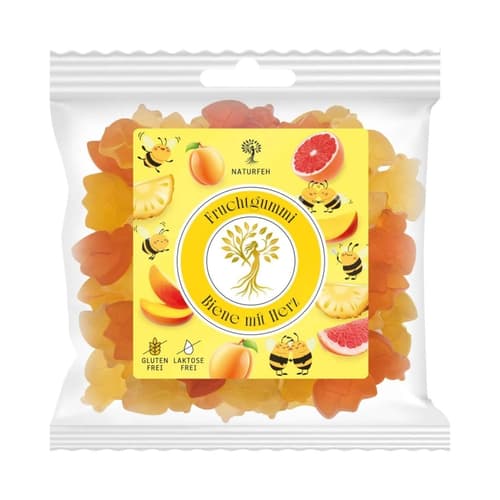 Einzigartiger Genuss: Vier sortenreine Fruchtsäfte in exklusiver Bienenform mit Herz auf dem Rücken. Neben dem gewohnt authentischen Geschmacksgenuss steht dieses Produkt für einen guten Zweck! 1 Tüte = 1 Blühfläche gemeinsam mit blühfläche.de Intensives Geschmackserlebnis: Die Fruchtgummis sorgen durch ihre schöne Bienenform für Frühlingsgefühle. Saftige 20 % Fruchtsaft warten auf dich, die Bienen schmecken nach Ananas, Mango, Grapefruit und Marille. Die Fruchtsaft Bienen sind glutenfrei, laktosefrei und fettfrei, sowie ohne künstliche Farbstoffe. Liebevoll verpackt: Die Honigbiene mit Herz ist als Tüte (150g) verfügbar und mit einem tollen Papieretikett versehen. Perfekt für deine Gummibärchen Box oder als Fruchtgummi Geschenk.