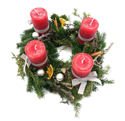 Der Kranz wurde aus ganz frischem Tannenreisig gebunden. Um ihn lange frisch zu halten, stellen Sie ihn bis zum 1. Advent so kühl als möglich.