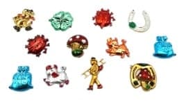 ideal für die Geldbörse und zum Verschenken auf Partys, verschiedene Motive wie Rauchfangkehrer, Pilz, Marienkäfer, Geldsack, Kleeblatt, Glücksschwein, Hufeisen, gemischt sortiert