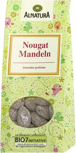 Bio Mandeln in Vollmilchschokolade mit Nougat, mit Zucker bestäubt