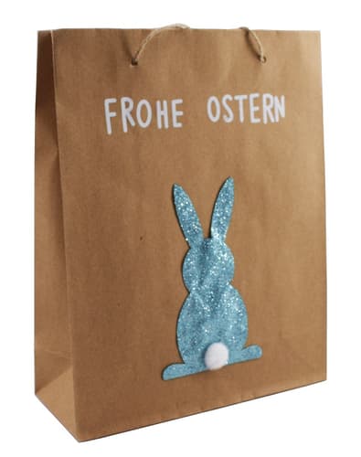 Tragetasche "Frohe Ostern" mit Hase aus blauem Glitter