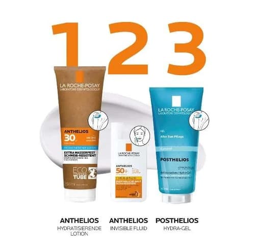 Moisturizing sun milk for dry and sensitive skin The Anthelios sun milk SPF 50+ for the body reliably protects against harmful UVA and UVB rays. Thanks to glycerin and thermal water from La Roche-Posay, it provides moisture for up to 24 hours. Anthelios sun milk SPF 30 from La Roche Posay Thanks to Netlock technology, the velvety formula forms a waterproof, sand- and sweat-resistant protection. In addition, the sun protection for sensitive skin does not run, grease or stick and leaves no white residue. The innovative cardboard tube contains FSC or PEFC-certified cardboard components and saves 45% new plastic compared to the previous plastic tube.