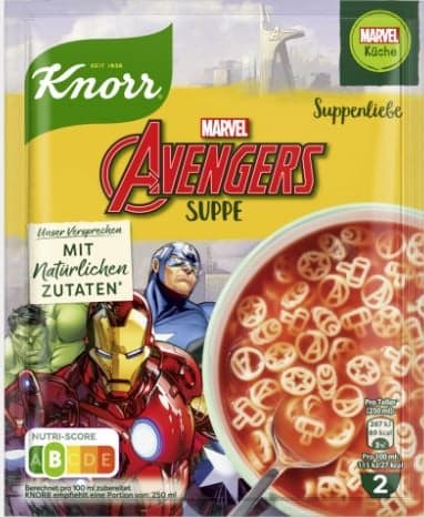 Knorr Disney Avengers Suppe41 gThis product is no longer available.Country:according to the current offerplease contact customer support for the exact information