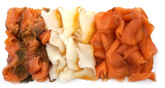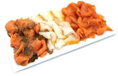 Räucherfisch Trilogie, geschnitten. Bestehend aus: