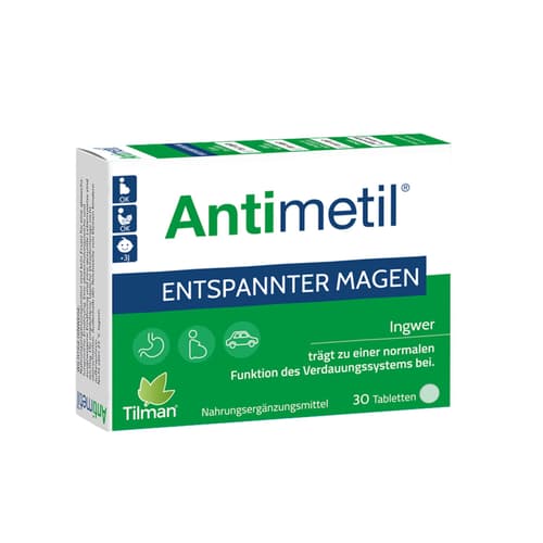 Antimetil® helps with any kind of nausea. It increases digestive secretions and thus improves digestion (e.g. with too heavy food), stimulates gastric emptying and relieves stomach cramps. Reduces nausea/vomiting and prevents travel sickness.