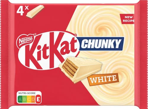 KitKat Chunky White Schokoriegel 4er Multipack: der beliebte weiße Schokoladen-Klassiker in extra groß.