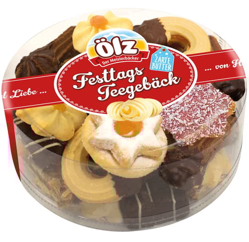 Das Ölz Festtags-Teegebäck besticht durch seine Konditor-Qualität und die Vielzahl an traditionell österreichischen Weihnachtskeksen aus unterschiedlichen Teigen und Füllungen. Aus besten Zutaten und mit reiner Butter gebacken. Die hochwertigen Kekse werden mit viel Liebe von Meisterhand geformt und dekoriert. Praktisch in einer runden, wiederverschließbaren Keksdose verpackt. Ein unwiderstehlicher Genuss zur Weihnachtszeit.