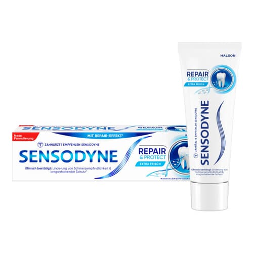 - Sensodyne Repair* & Protect bildet eine Schutzschicht auf freiliegendem Dentin