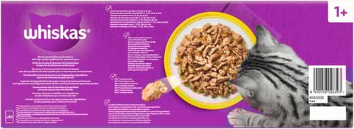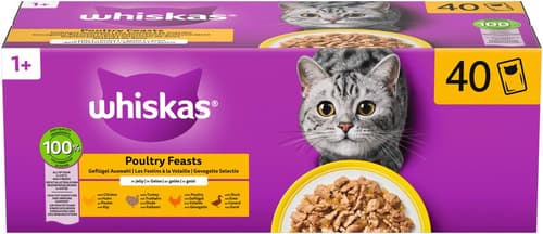 Whiskas Fresh Pouches Geflügel-Auswahl in Gelee, ein 40er Pack aus Frankreich, ist ideal für Katzen ab 1 Jahr. Zarte Geflügelstücke wie Huhn, Ente, Pute und Geflügel-Mix in köstlichem Gelee bieten eine schmackhafte Mahlzeit. Diese praktischen 3.4 kg Beutel versorgen Ihre Katze mit wichtigen Nährstoffen und sorgen für Abwechslung im Napf.
