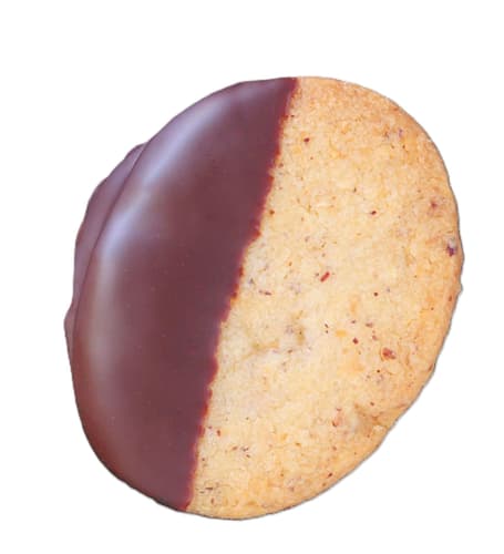 Knuspriger Nussmürbteig gefüllt mit feiner Nougatcreme zusammengesetzt.