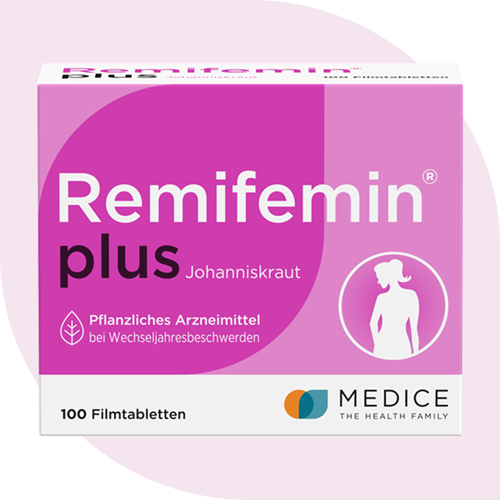 remifemin® PLUS Johanniskraut empfiehlt sich bei betont seelischen und bei mittleren bis starken Wechseljahresbeschwerden sowie als effizienter Behandlungsbeginn bei den ersten Symptomen. Durch die Kombination aus Traubensilberkerze und Johanniskraut werden nicht nur körperliche Beschwerden wie Hitzewallungen und Schweißausbrüche gelindert, sondern auch seelische Symptome wie Stimmungsschwankungen, Nervosität und erhöhte Reizbarkeit.