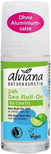 Der alviana 24h Deo Roll-On Bio-Limette verleiht auf natürliche Weise ein besonderes Gefühl von Frische und aktivem Deo-Schutz. Die Formulierung ist mit hochwertigen Rohstoffen aus kontrolliert biologischem Anbau angereichert und wirkt mit dem Saft der Aloe Vera Pflanze und Salbeiwasser desodorierend. Mit einem fruchtig-frischen Duft nach Limette sorgt das alviana Deo Roll-On für ein angenehmes Frischegefühl. Die Rezeptur ist besonders sanft zur Achselhaut und bietet einen zuverlässigen 24h Deo-Schutz – ganz ohne Aluminiumsalze.