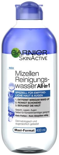 Garnier Mizellen Reinigungswasser Sensitiv für empfindliche Haut befreit Gesicht, Lippen und Augen schnell und schonend von Make-up-Resten und Schmutzpartikeln. Dank innovativer Mizellen-Technologie ganz ohne Reiben und ohne zu strapazieren – auch ideal zum Abschminken. Die Mizellen-Moleküle ziehen Schmutz an wie ein Magnet. Das Reinigungswasser pflegt die Haut dank feuchtigkeitsspendendem Glycerin. Kornblumenwasser, das hilft, empfindliche Haut zu entspannen und zu beruhigen. Ideal für empfindliche Haut geeignet.