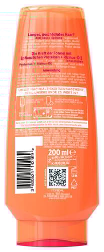 Verabschiede dich von Knoten und erlebe müheloses Styling mit unserer Super-Aufbau-Spülung! Die einzigartige Formel mit pflanzlichen Proteinen, Vitaminen und wertvollem Rizinusöl repariert dein Haar bis in die Spitzen und stärkt es nachhaltig gegen Haarbruch – selbst beim Kreieren aufwendiger Flechtfrisuren oder Locken. Genieße geschmeidiges, glänzendes Haar voller Spannkraft und erlebe die Geheimformel für sichtbar gesundes Haar – bis in die Spitzen.