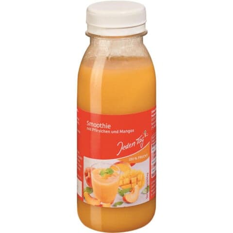 Zutaten: Pfirsichmark 30%, Apfelsaft 29%, Bananemark 15%, Orangensaft 14%, Mangopüree 10%, Maracujasaft 2%z
