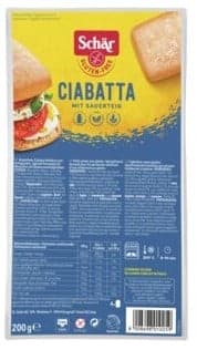 Zutaten: Maisstärke, Wasser, Sauerteig 12 % (Reismehl, Wasser), Maismehl, Reismehl, pflanzliche Ballaststoffe (Psyllium), Verdickungsmittel: Hydroxypropylmethylcellulose; Sojaprotein, Sonnenblumenöl, Hefe, natives Olivenöl extra 0,9 %, Salz, Säuerungsmittel: Zitronensäure, Weinsäure