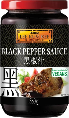 Zutaten: Wasser, Zucker, Sojasauce (Wasser, Salz, SOJAbohnen, WEIZEN, Farbstoff: Zuckerkulör (E150A); Glucose-Fructose-Sirup), Salz, Tomatenmark, Hefeextrakt (Hefeextrakt, Wasser, Salz), gemahlener schwarzer Pfeffer (4%), Farbstoff: Zuckerkulör (E150A); getrockneter Knoblauch, modifizierte Maisstärke, SOJAöl, Säuerungsmittel: Citronensäure (E330); Geschmacksverstärker: Dinatriuminosinat (E631), Dinatriumguanylat (E627).