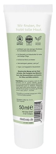 Wenn es draußen stürmt und schneit, benötigt die zarte Babyhaut besonders intensiven Schutz. Unser extra reichhaltiger Balsam mit Kakaobutter schützt die empfindsame Haut zuverlässig selbst bei frostigen Temperaturen. Die besondere Zusammensetzung aus Aprikosenkern- und Olivenöl sowie Ringelblumenextrakt aus kontrolliert biologischem Anbau pflegt und beruhigt strapazierte Haut, zusätzlich hilft sie den natürlichen Schutzfilm der Haut zu stärken. Die dezent duftende Wind- und Wettercreme lässt sich kinderleicht auftragen und sorgt für eine rundum geschützte Haut ohne einen klebrigen Film zu hinterlassen. Für die Extraportion Schutz und langanhaltende Pflege! Vegan – auch ohne Bienenwachs.