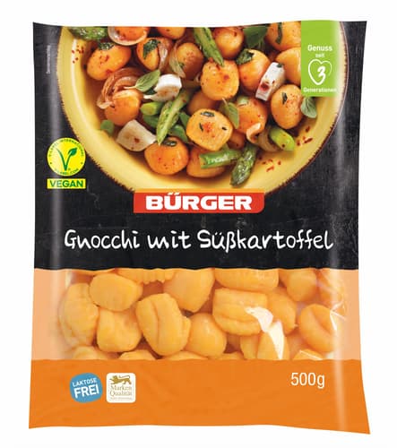 Gnocchi erfreuen sich zunehmender Beliebtheit: Die feinen, geriffelten Kartoffel-Klößchen bieten eine große Vielfalt an Zubereitungs- und Serviermöglichkeiten. Genauso vielseitig wie das Original ist auch diese Variante mit Süßkartoffel.