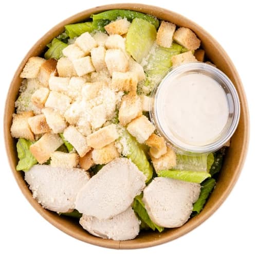 Zutaten: Mischgemüse in verschiedenen Anteilen 43,5% (Friséesalat, Karotten, Radicchiosalat, weißer Radicchio, Rucola, Lollo Biondo-Salat), gebratene Hühnerbrust 17,4% [Hühnerbrust, Salz, Olivenöl, gemahlener schwarzer Pfeffer, Grillgewürz (Salz, Paprika, Knoblauch,