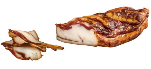 Zutaten: Bauchspeck, Speisesalz unjodiert, Gewürze, Zucker, Dextrose, Konservierungsmittel: Natriumnitrit