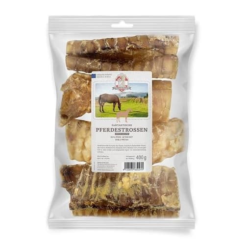 Pferdestrossen sind besonders für hunde mit Futtermittelunverträglichkeiten gut geeignet, da Pferdefleisch hypoallergen ist und von fast allen Vierbeinern gut vertragen wird. Ein hoher Anteil an Kollagen und Calcium macht die schonend luftgetrockneten Pferdestrossen noch wertvoller. Calcium wird vor allem für das Wachstum und die Stabilität des Knochengerüsts und die Blutgerinnung, aber auch den Zellstoffwechsel benötigt. Kollagen hingegen kann die Produktion von gesundem Gelenkknorpel unterstützen und bestehenden Knorpel vor dem Abbau schützen.