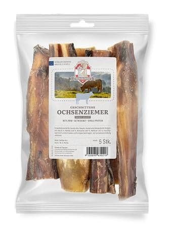 Ochsenziemer sind einer der Klassiker unter den Kauartikeln für hunde; und das aus gutem Grund. Ihre harte Konsistenz bietet Deinem hund eine lang andauernde Beschäftigung und fördert zugleich die Reinigung und Gesundheit seine Zähne. Zudem sind die Ochsenziemer von SISSI & FRANZ mit einem sehr geringen Fettanteil auch zur Beschäftigung und Belohnung aller hunde mit Gewichtsproblemen bestens geeignet. Schonend luftgetrocknet und frei von Zusatz- und Konservierungsstoffen, besteht dieser wertvolle Leckerbissen nahezu ausschließlich aus Eiweißen, die Deinen hund mit viel hochwertiger Energie versorgen.