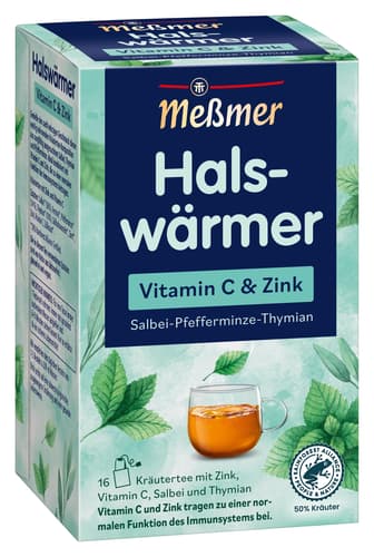 Genieße den samt-würzigen Geschmack dieser wohlig-wärmenden Kräutertee-Komposition aus sorgfältig ausgesuchtem Salbei, Thymian und Pfefferminze. Ideal kombiniert mit Vitamin C und Zink, die zu einer normalen Funktion des Immunsystems beitragen.