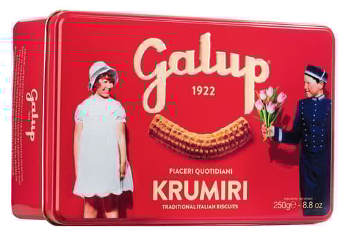 Die Galup Krumiri Classici sind ein traditionelles piemontesisches Gebäck aus Casale Monferrato. In der dekorativen Blechdose präsentiert sich der vertraute, altmodische Geschmack stilvoll – ideal als edles Weihnachtsgebäck oder als charmantes Präsent.