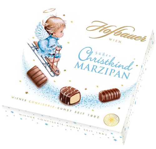 Die Hofbauer Süßes Christkind Marzipan Pralinen verbinden aromatisches Marzipan mit feiner Schokolade. Umhüllt von zarter Schokolade und Milchschokolade entsteht eine ausgewogene Komposition, die weihnachtlichen Genuss verspricht. Eine klassische Spezialität für die Advents- und Weihnachtszeit.