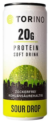 TORINO Sour Drop ist ein kohlensäurehaltiger Softdrink, der dir 20 g hochwertiges Molkenprotein mit einem spritzigen Mix aus Zitrone und Limette bietet - ganz ohne Zucker, Fett oder Laktose und ohne das typische Shake-Gefühl. Ideal für aktive Menschen, die unterwegs ihre Proteinversorgung auffrischen möchten.