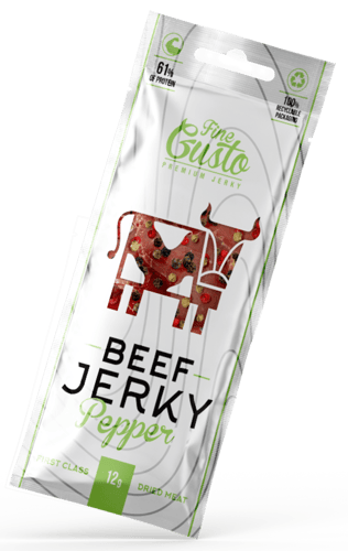 Ein intensiver, proteinreicher Snack für alle, die das kräftige Aroma von Pfeffer lieben. Unser Beef Jerky wird aus feinstem Rindfleisch hergestellt, nach südafrikanischer Tradition luftgetrocknet und großzügig mit grobem schwarzem Pfeffer gewürzt. Ein herzhafter Genuss, der auf der Zunge zergeht und ideal für unterwegs oder als Snack zwischendurch ist.