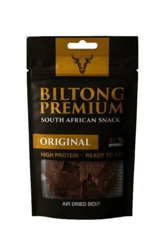 Ein intensiver, proteinreicher Snack für alle, die das ursprüngliche Fleischaroma lieben. Unser Biltong Beef Jerky wird aus feinstem Rindfleisch hergestellt, nach südafrikanischer Tradition luftgetrocknet und nur mit einer milden Gewürzmischung verfeinert. Ein zarter, aber würziger Genuss, perfekt für unterwegs oder als Snack zwischendurch.