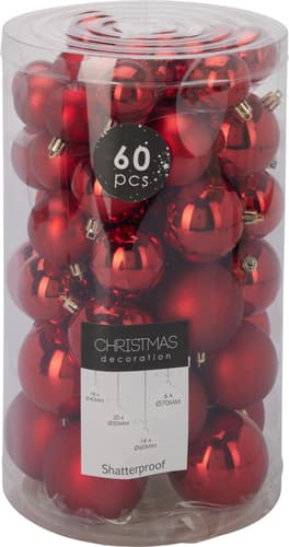 Weihnachtskugeln‑Set 60 Stück, Rot, Polystyrol