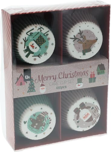 Dieses Set enthält 100 Teile mit weihnachtlichen Motiven – typischerweise bestehend aus Papierförmchen und dekorativen Toppern oder ausgefallenen Designs. Es eignet sich ideal für die Produktion und Präsentation von Weihnachts‑Cupcakes, Muffins oder kleinen Backwaren mit saisonalem Charakter.