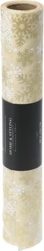 Dieser Dekorstoff zeigt ein Muster aus goldenen Schneeflöckchen und eignet sich besonders für festliche Dekorationen wie Tischläufer, Kissenbezüge oder weihnachtliche Akzente. Der Stoff ist dekorativ und lässt sich in vielen saisonalen Designideen einsetzen.